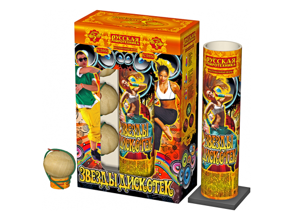В комплект входит много зарядная мортира и несколько шарообразных снарядов с разными пиротехническими эффектами.